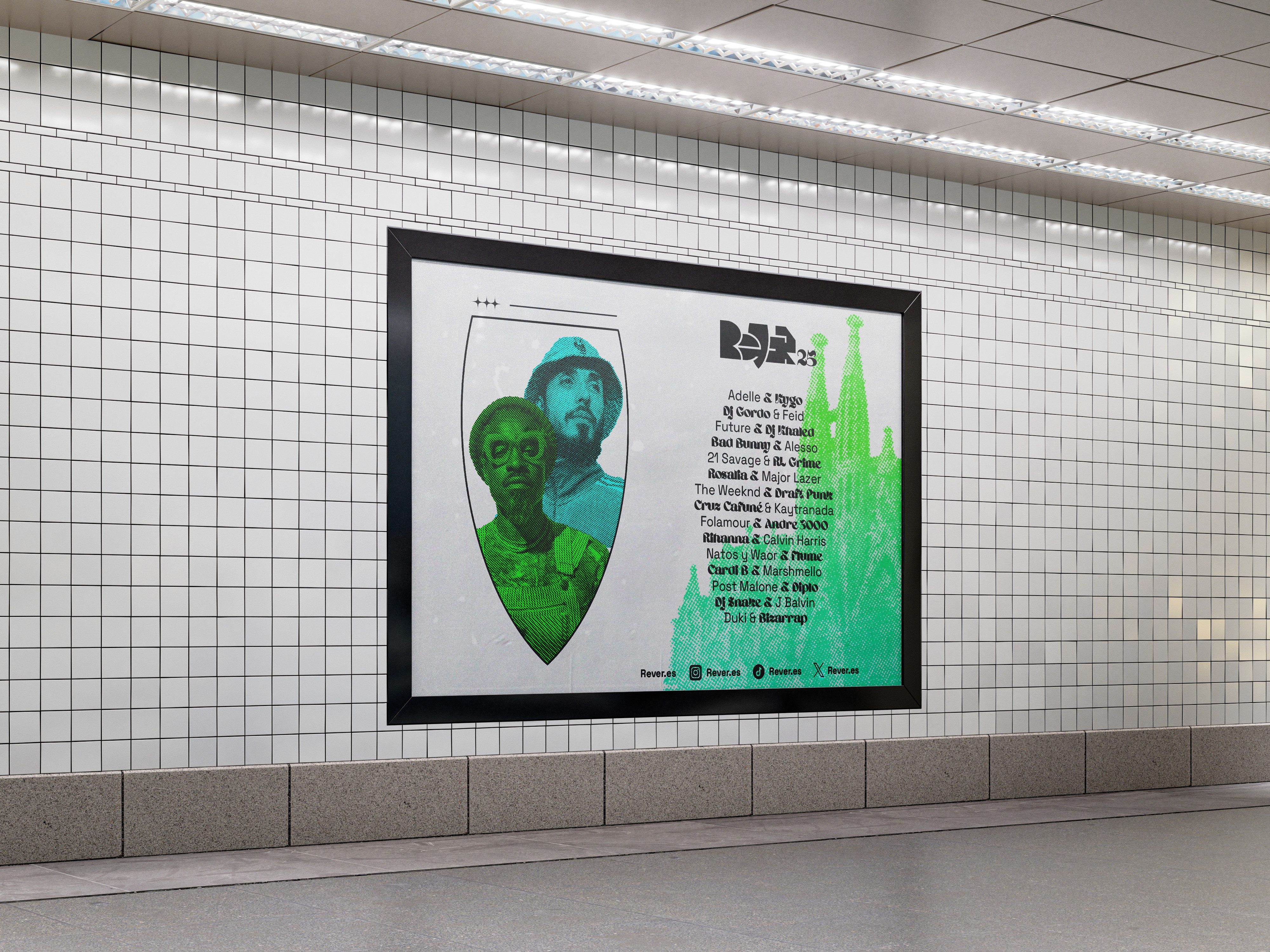 Identidad visual desarrollada para el proyecto musical ficticio Rever Fest. La propuesta gráfica nace de la mezcla de estilos musicales que define al festival, construyendo un sistema visual diverso y contrastado a través de tipografías, formas y composiciones enfrentadas.